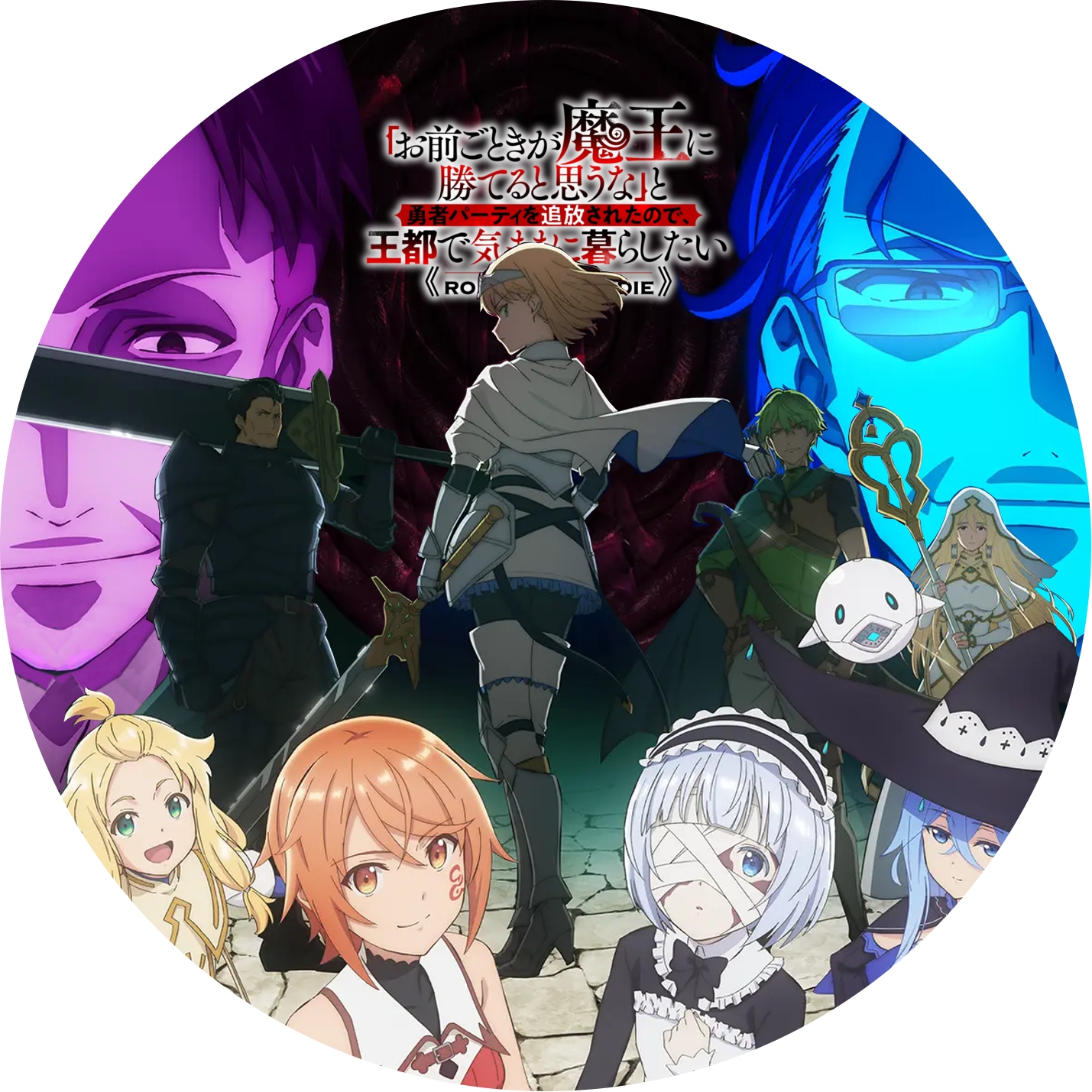 お前ごときが魔王に勝てると思うな」と勇者パーティを追放されたので、王都で気ままに暮らしたい」のDVDラベル パターン1, パターン2 です。